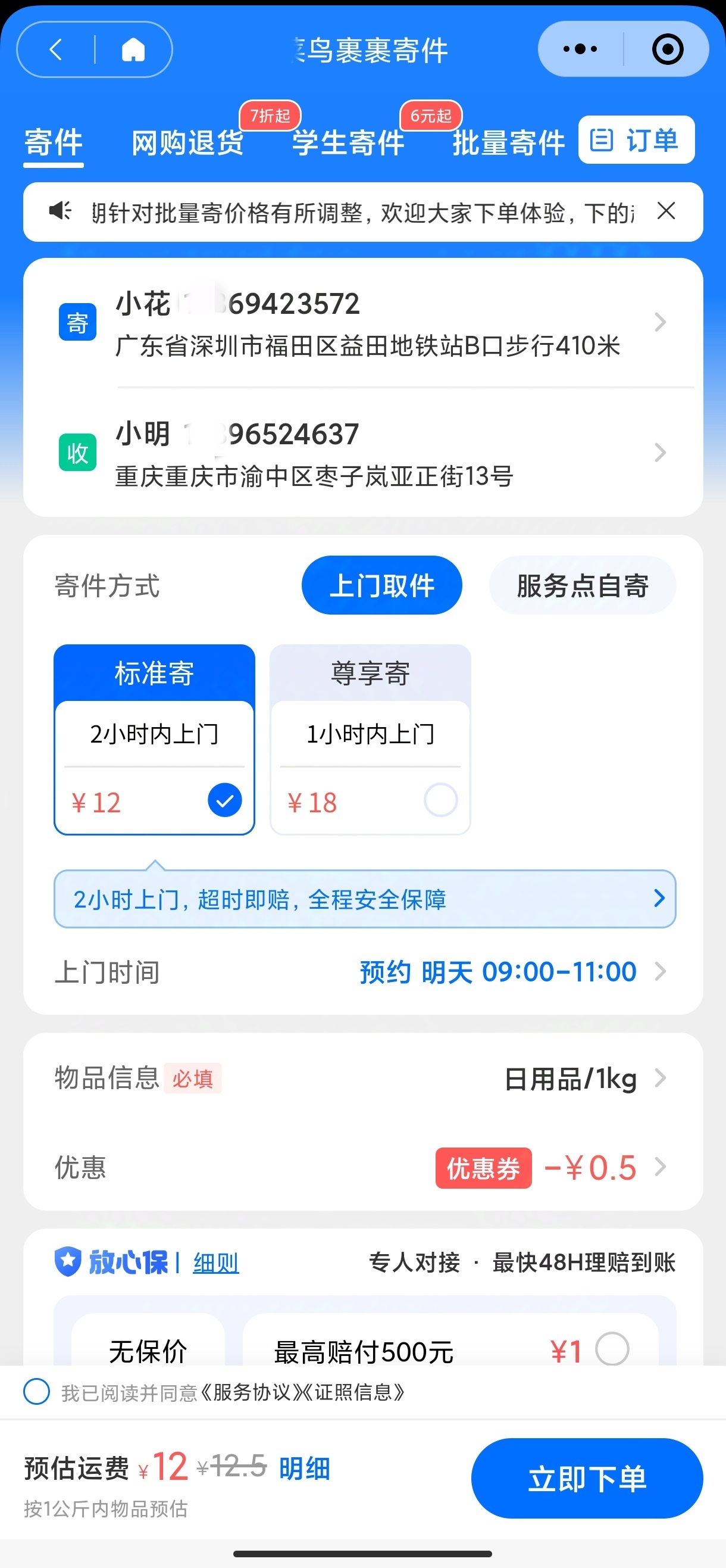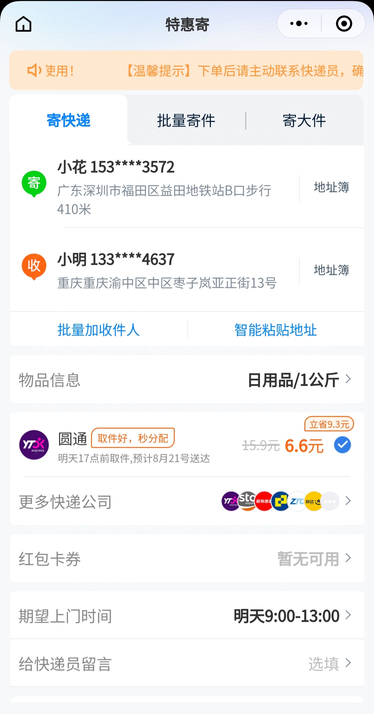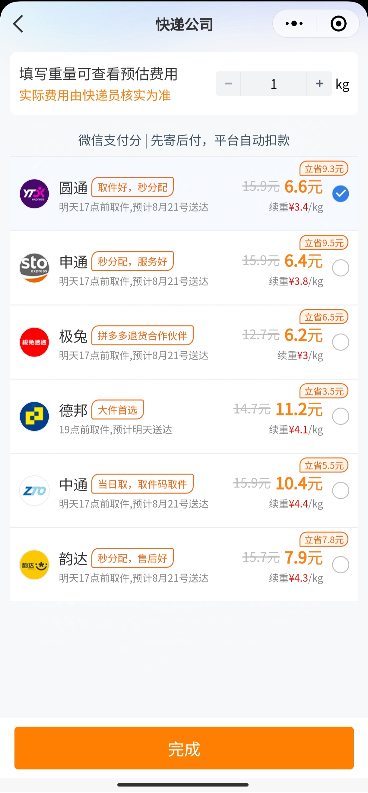 下面是优惠快递平台和几大快递平台官方小程序的价格情况,报价使用的同样目的地、同样物品重量。